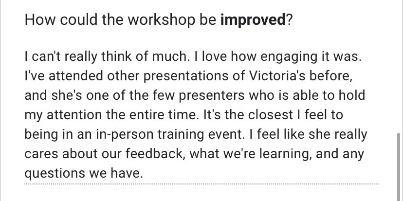 While I do go over how to apply for and teach an in-person course in this workshop, I have taught primarily online courses while working from home. You can either teach synchronously online (meaning you are meeting regularly over video) or asynchronously (meaning you are creating and guiding students through a self-paced course - no regular meetings required).